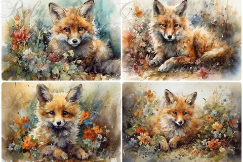 Baby Fox Rice Paper by Reba Rose Creations in size A4.