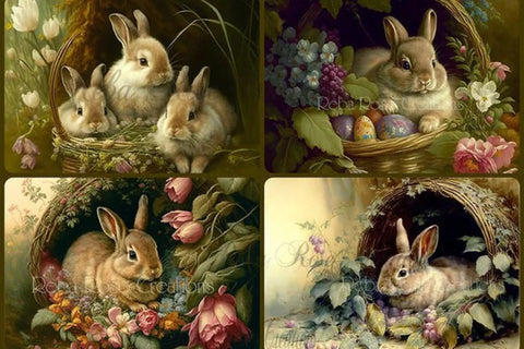 Basket Bunnies Rice Paper by Reba Rose Creations in size A4.