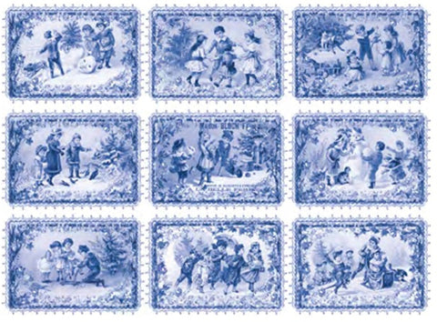 "Blue Vintage 9 Cards Winter Children" TCR 206 Decoupage Rice Paper by Calambour Italy