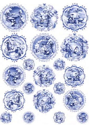 "Blue Vintage Round Winter Scenes" TCR 202 Decoupage Rice Paper by Calambour Italy