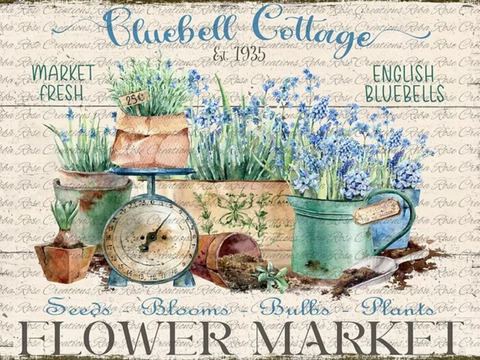 Bluebell Cottage Rice Paper by Adorabelle Vintage Co. for Reba Rose Creations, size A4.