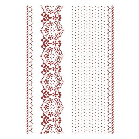 Stencils can add fun accents or elegant designs to home decor projects, furniture, papier mache, decoupage, scrapbook pages, greeting cards, mixed media and craft projects! They can be used with inks, mists, paints, texture pastes and other similar applications.