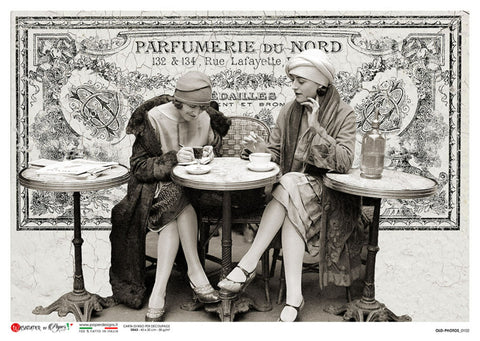 "Old Photos 0102", Vintage Paris cafe scene depicting two lovely, stylishly dressed women by Paper Designs Washipaper. This is a true favorite. Great in mixed media and altered art.
