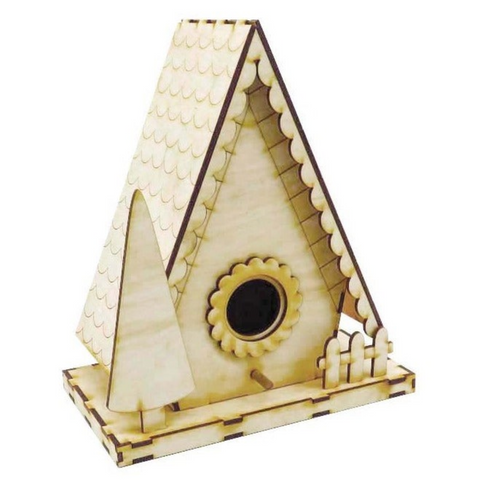This delightful birdhouse is inspired by Mary's art and ready for your personal touch! Follow the directions for assembly and then add some painted details. The pieces for this birdhouse are laser cut from Baltic Birch Plywood. While real birds would likely be thrilled to call this home, it is for decorative use only.