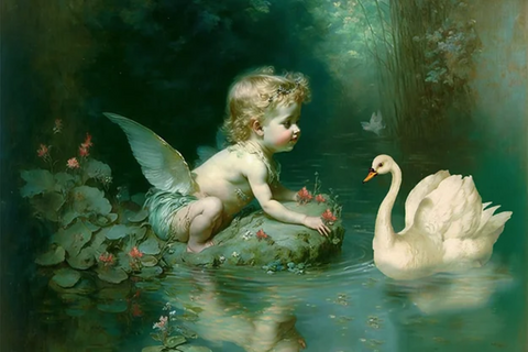 Cherub with Swan Rice Paper by Reba Rose Creations in size A4.