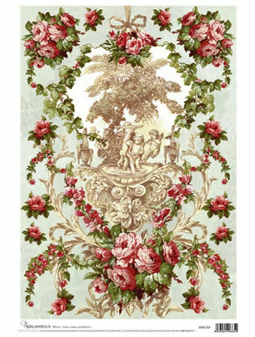 " Cherubs and Roses" Decoupage Rice Paper by Calambour Italy
