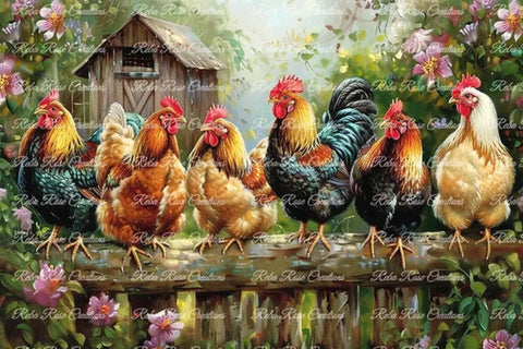 Chicken Line Rice Paper by Reba Rose Creations in size A4.
