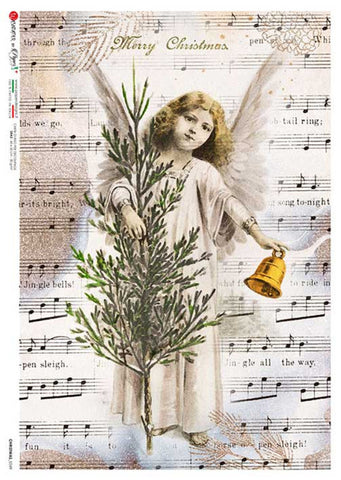 "Christmas 0349" by Paper Designs Washipaper. This rice paper features beautiful musical angel. These are perfect for holiday projects. Great for ornaments, papier mache, altered art, journals, scrapbooks, shadowboxes, gift tag art...so many ways to create with these. You are not limited to the design as is. These designs can be cut and divided to use on multiple smaller projects.