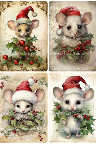 Christmas Baby Mice Rice Paper by Reba Rose Creations in size A4.
