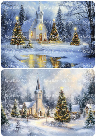 Christmas Chapel Rice Paper by Reba Rose Creations in size A4.