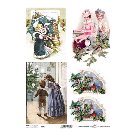Christmas Holly Visits Rice Paper by ITD Collection, R0771, A4