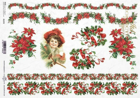 ITD Collection "Christmas Poinsettias and Holly" Rice Paper, R1278