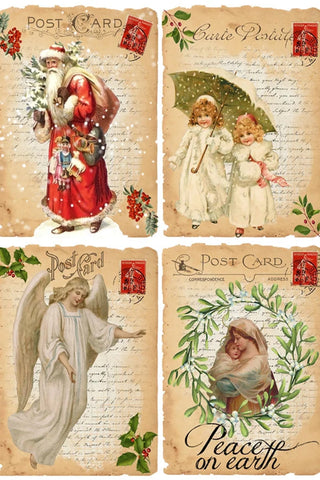 Christmas Postcards Rice Paper by Reba Rose Creations in size A4.