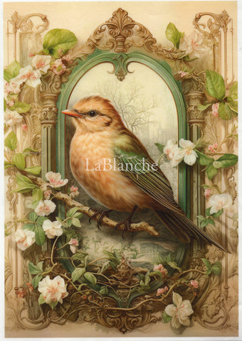 Easter 5 Rice Paper by LaBlanche, Pink and Green Bird, A4+