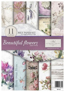 Beautiful Flowers Rice Paper Set by ITD Collection, RP018, Pack of 11