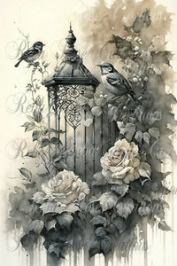 Black and White Birdcage Rice Paper by Reba Rose Creations