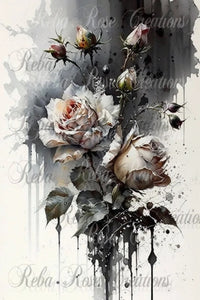 Black & White Spring Florals Rice Paper by Reba Rose Creations