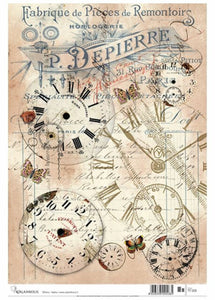 Clock Collage Decoupage Rice Paper by Calambour Italy