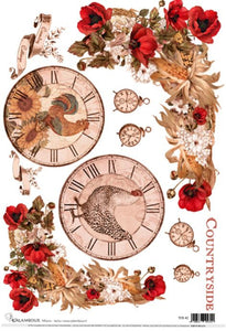 Countryside Poppies and Roosters Decoupage Rice Paper by Calambour Italy, TCR04220%  - Vendor