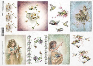 Daisy Girl, Lady Bugs and Birds Rice Paper by ITD Collection, R1337, A4
