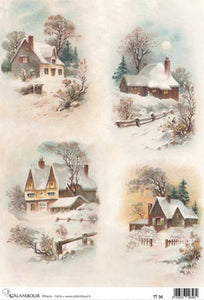 4 Pack Snow Covered Houses Rice Paper by Calambour Italy TT3420%