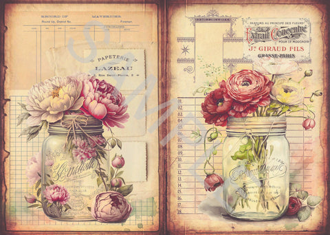 "Flowers in Mason Jar 3" Decoupage Rice Paper