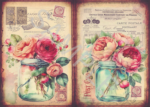 Flowers in Mason Jar 5 Rice Paper by Calambour Italy