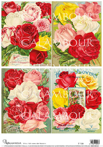 "Red Pink White and Yellow Roses" Decoupage Rice Paper