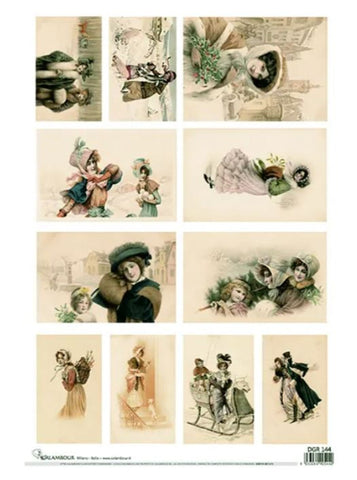 "Vintage Mini Christmas Cards" Decoupage Rice Paper by Calambour Italy