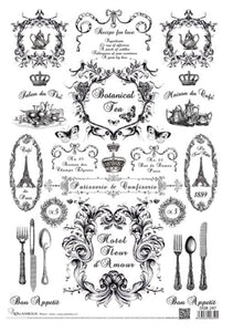 Parisian Tea Black and White Decoupage Rice Paper by Calambour Italy, DGR24720%  - Vendor