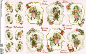 Pink Christmas Vintage Santas Decoupage Rice Paper by Calambour Italy DGR26320%  - Vendor