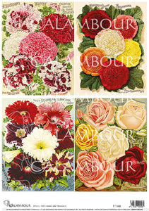 Petunias Hollyhock and Roses Rice Paper by Calambour Italy TT14020%  - Vendor