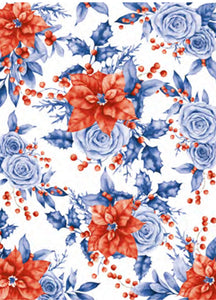 Red and Blue Christmas Poinsettias and Roses Rice Paper by Calambour Italy, TCR20120%  - Vendor