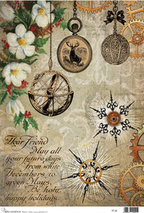 Steampunk Christmas Greetings Rice Paper by Calambour Italy TT2520%  - Vendor