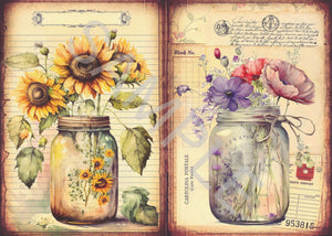 Flowers in Mason Jar 5 Rice Paper by Calambour Italy