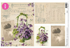 Romantic Flower Basket Decoupage Rice Paper by Calambour Italy