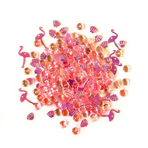 Pink Flamingo is a craft embellishment item. Shimmerz are sparkling translucent jewels paired with coordinating iridescent sequin shapes creating a brilliant, glowing mix.