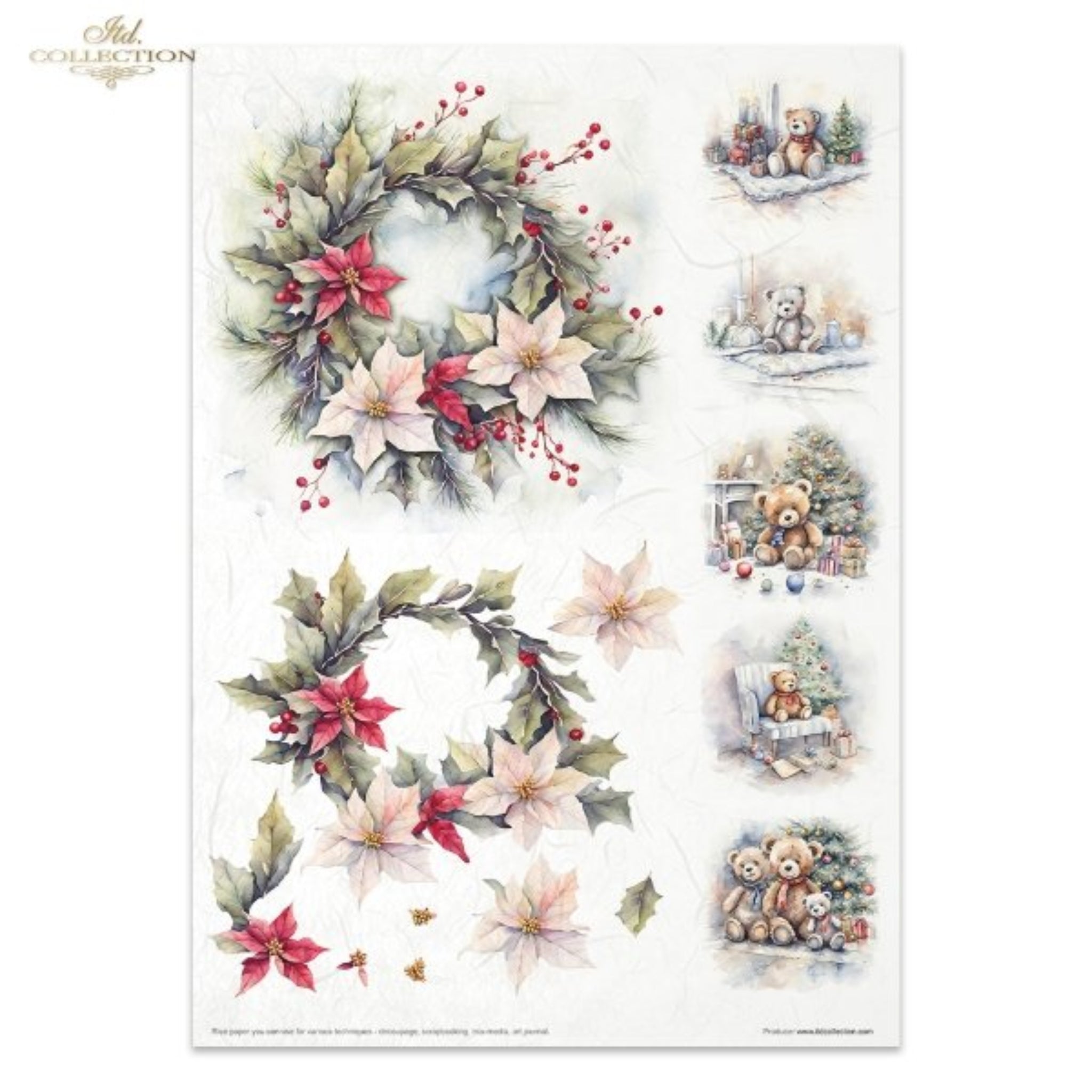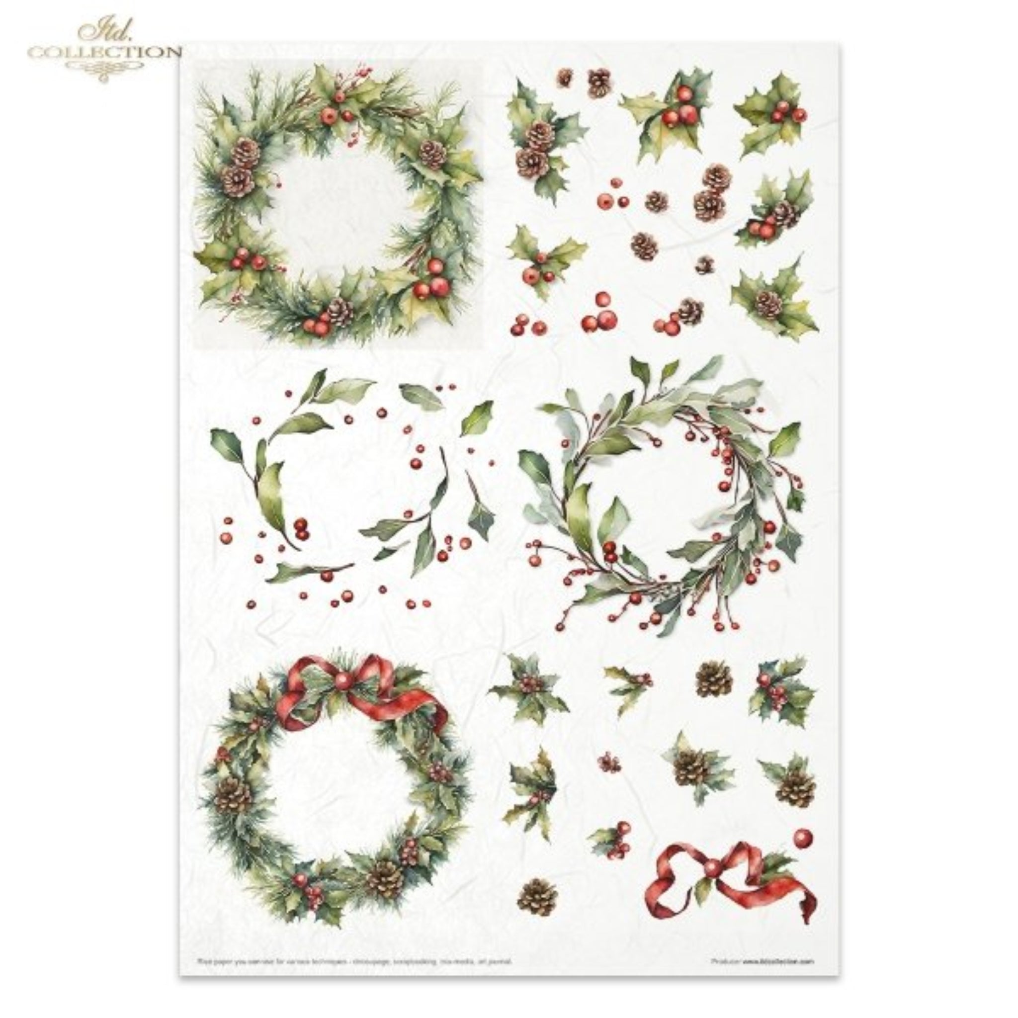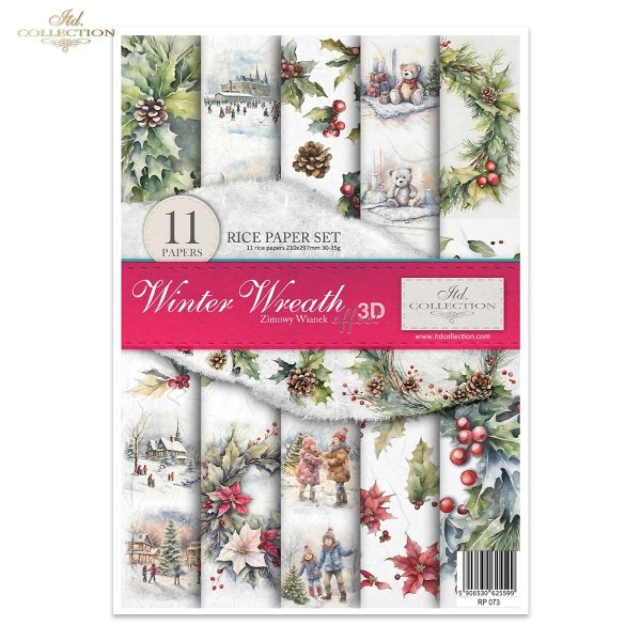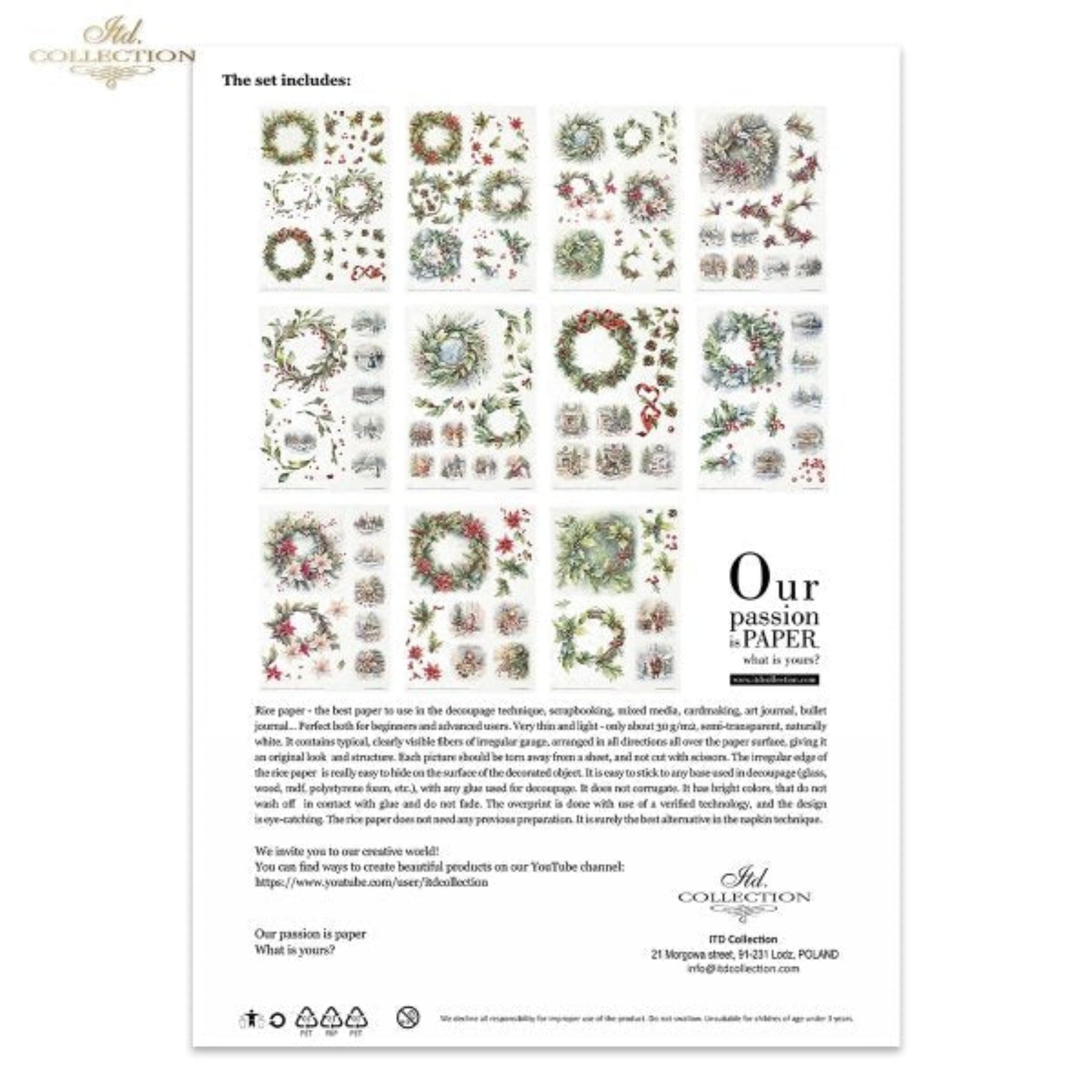 ITD Collection "Winter Wreath" Rice Paper Set, RP073 Pack of 11 A4 Papers