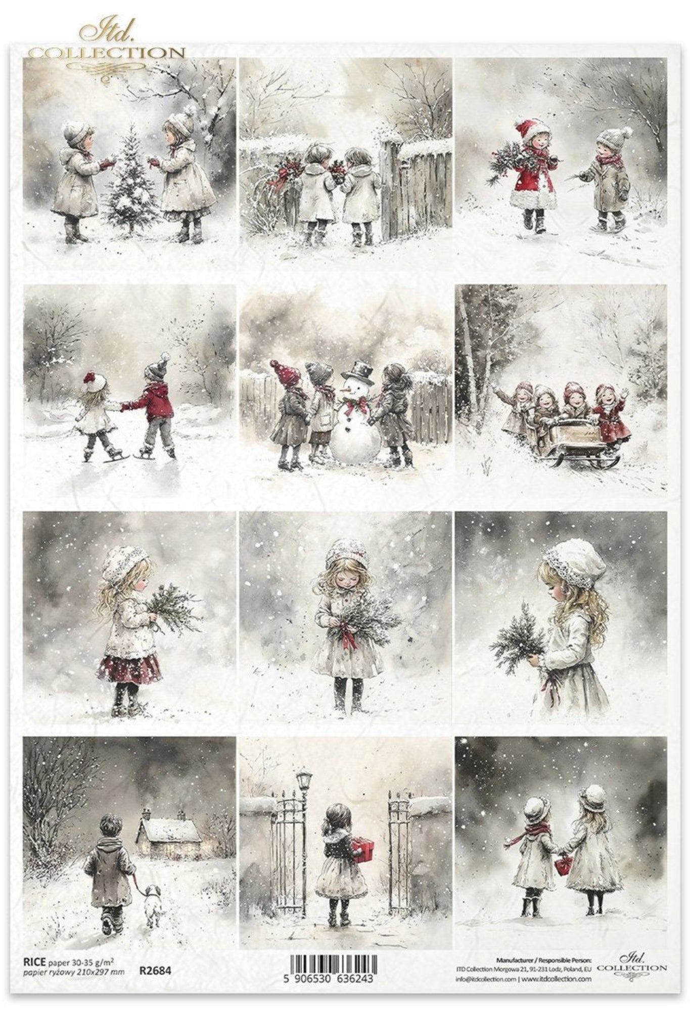 ITD Collection "Winter's Tale Christmas Snow Darlings" Rice Paper, R2684 and R1523L