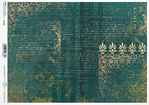 ITD Collection "Golden Script on Emerald Background" Rice Paper, R1592