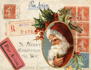 A Happy Christmas Santa and Angels by Monahan Papers, C185  - Vendor