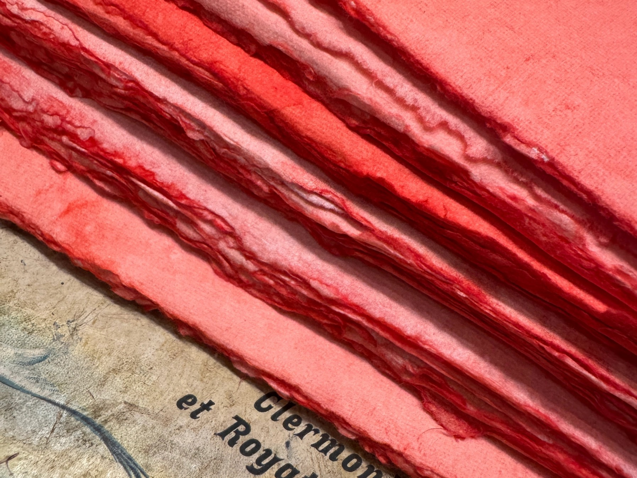 Handmade Deckled Edge Reddish Colored Paper Bundles by Monahan Papers