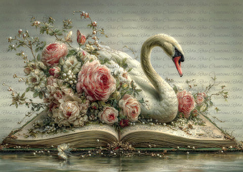 Once Upon a Time Swan Book Rice Paper by Reba Rose Creations in size A4.