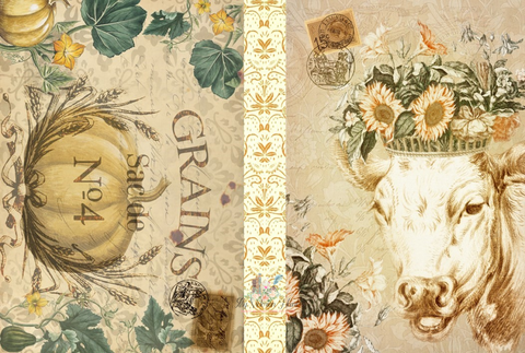 Your Fall projects bloom with pumpkins, sunflowers and a darling cow wearing a crown of fetching Fall florals for a sweet Fall Farmhouse vibe. Use this pretty paper as is or split the designs and make several fun Fall projects with Fall Project Blocks B!