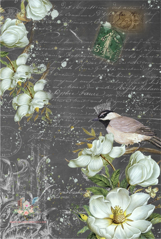 Summer Bird is a lovely design with a crowned bird perched on a branch full of Magnolia blossoms. On a chalkboard style background with gorgeous typography, old postmark, stamp and scrolly graphics. You are not limited to the design as is. You can cut these and apply to suit any various projects.