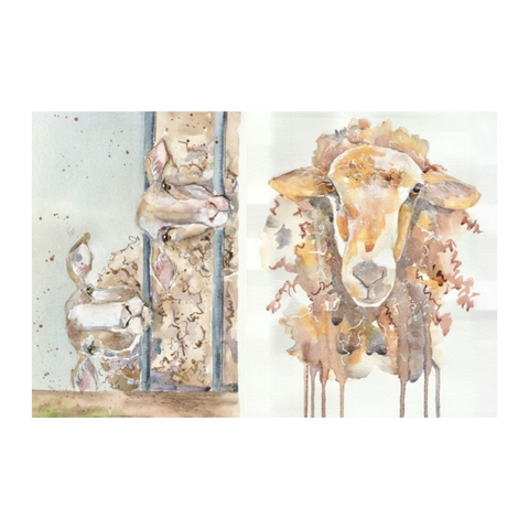 Darling Sheep in watercolor for your Farmhouse inspired creative projects. This paper has 2 blocks featuring sheep.