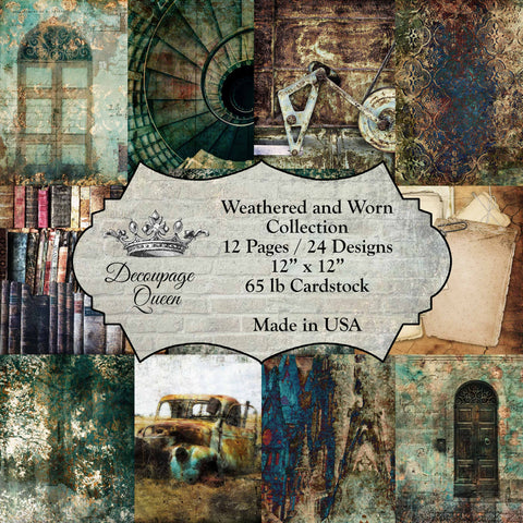 You receive the set of 12 Weathered and Worn Collection double-sided scrapbook papers.