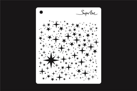 Quality, reusable stencil with a starry theme. Create beautiful stars with Pentart Glitter Pastes, Deluxe Pastes and more. Great for stenciling on small and larger projects. Stencil has a hanger hole for easily storing on a hook.