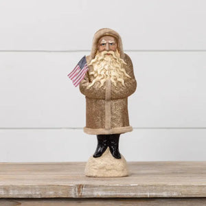 White Belsnickle Santa with USA Flag, 11 inches20%
