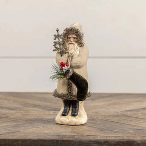 Oatmeal Velvet Belsnickel with Velvet Stocking and Tinsel Tree, 8"